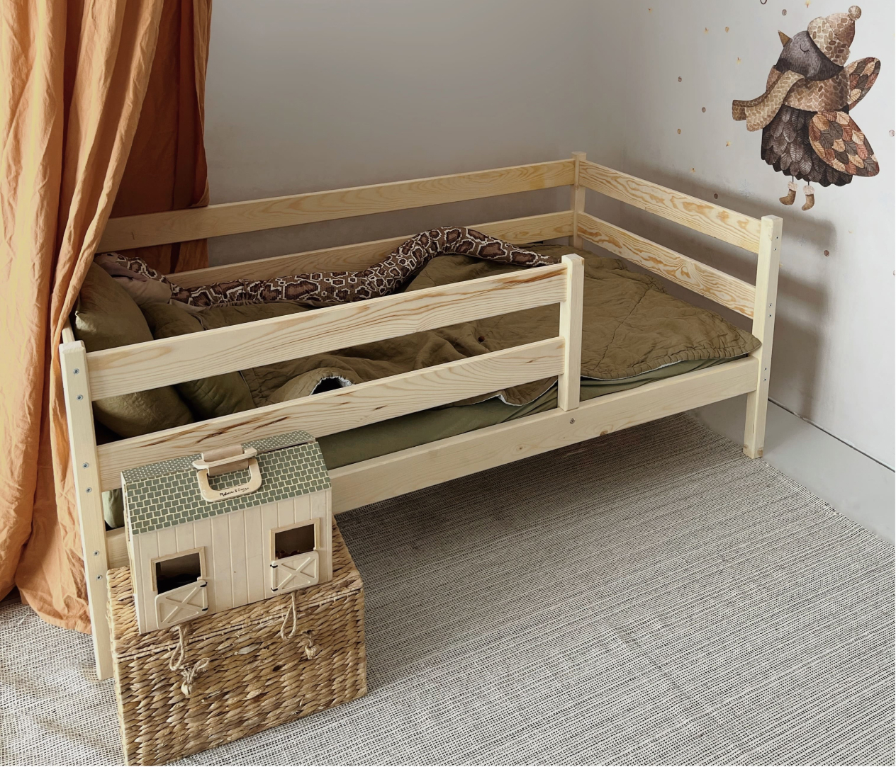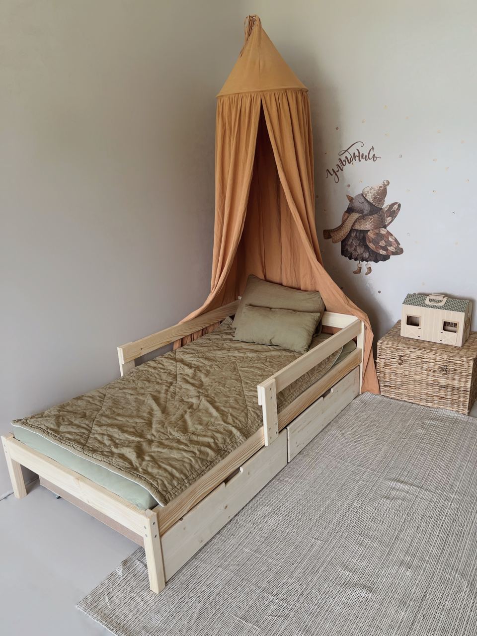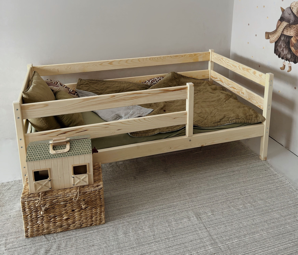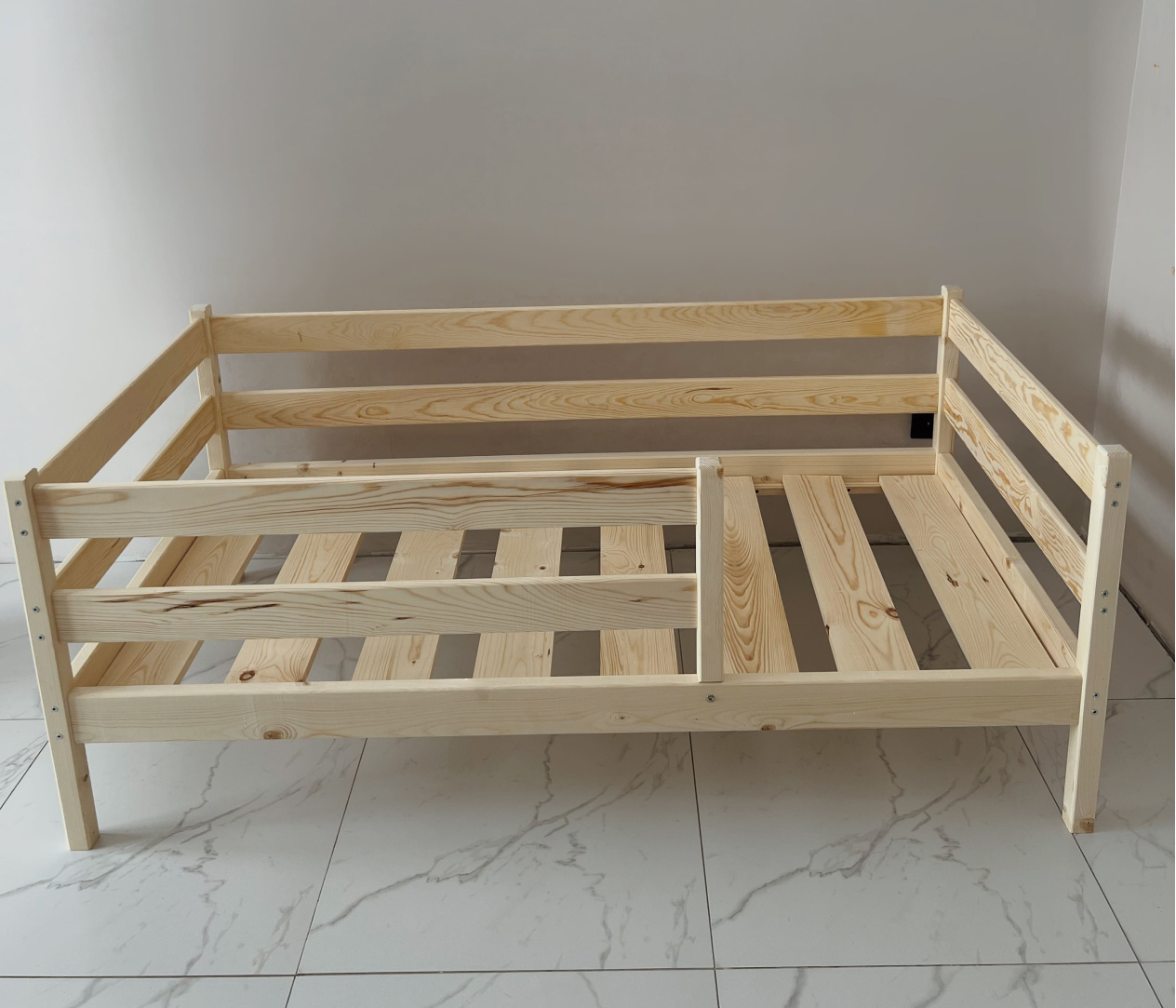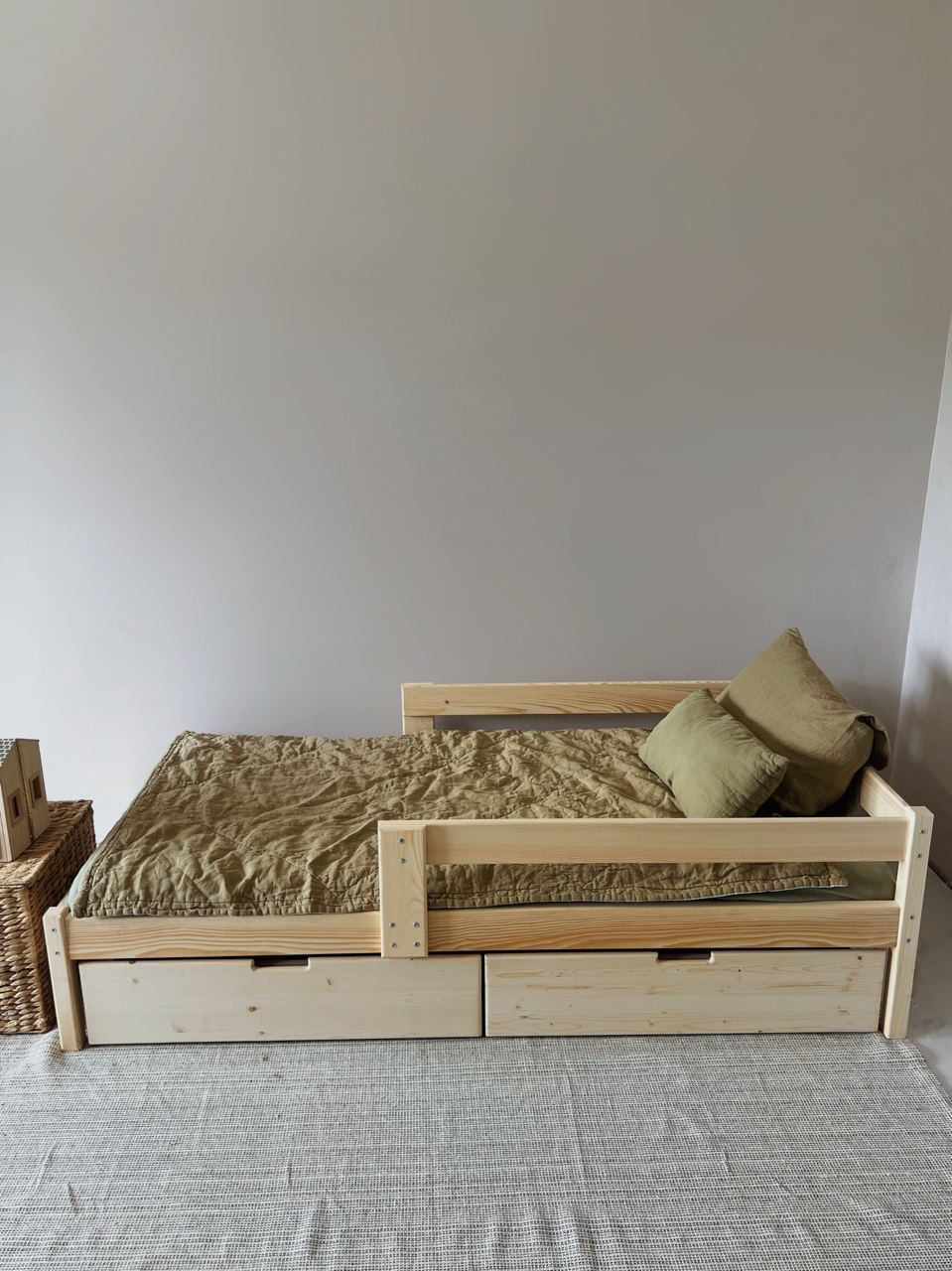 Детская кровать Aero с двумя бортиками по бокам легкая и компактная модель с доступной ценой. Подойдет для как для детской комнаты, так и дачи, детского сада. Может быть изготовлена из массива сосны или березы. Поставляется с речным дном из массива дерева.