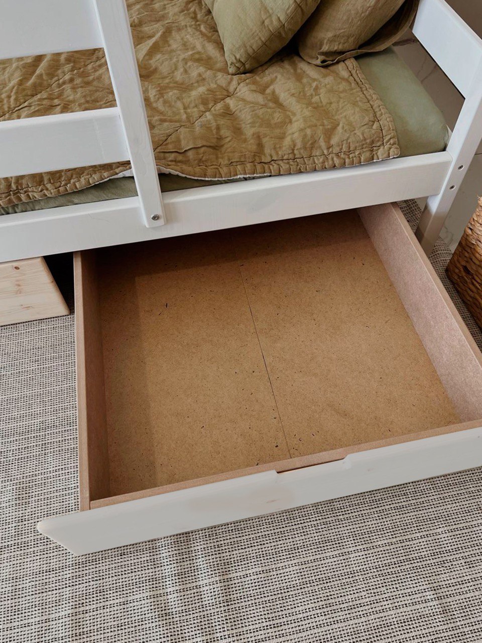 Ящики под кровать отлично подойдут для хранения постельного белья, игрушек, пеленок. Данные ящики подходят для кроватей Kiddie, Aero. Детская кровать с ящиками станет еще более функциональной. Выкатные ящики сделаны из массива сосны и мдф, также возможно исполнение в белом цвете. Занимают почти все пространство под кроватью, поэтому очень вместительные, позволят рационально хранить вещи в комнате.
